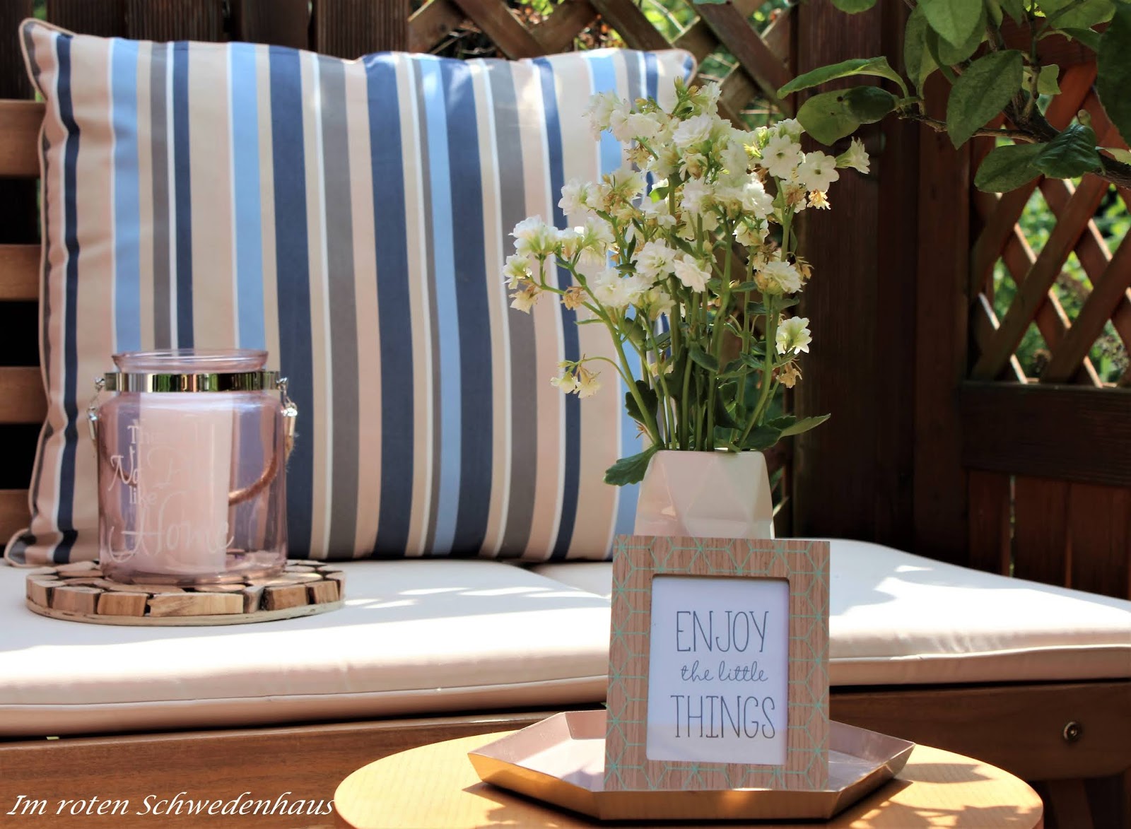 ich kann mir richtig gut vorstellen, wie entspannt und gemütlich ihr die lauen Sommerabende auf eurer Terrasse bzw. an eurem neuen Lieblingsplatz verbringen könnt. Du hast eure Terrassenecke so zauberhaft und gemütlich eingerichtet und die Lichterkette zaubert so ein wunderbar stimmungsvolles Licht