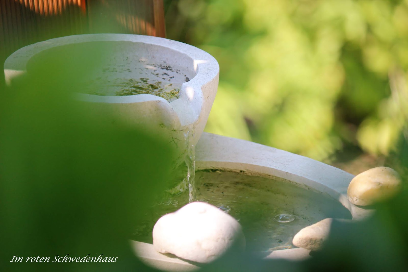 Beruhigend plätschert ein kleiner Solarbrunnen vor sich hin und bringt dadurch