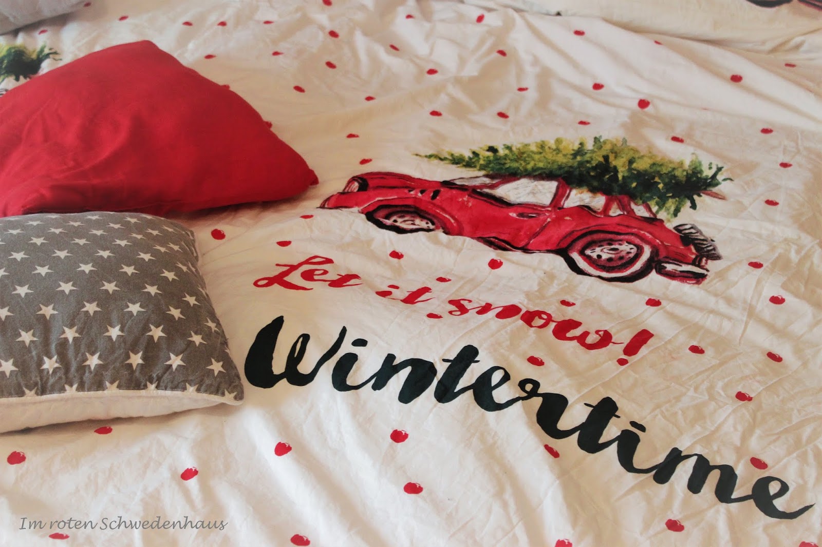 Weihnachtlich rot-weiß geht es dieses Jahr auch im Schlafzimmer zu…